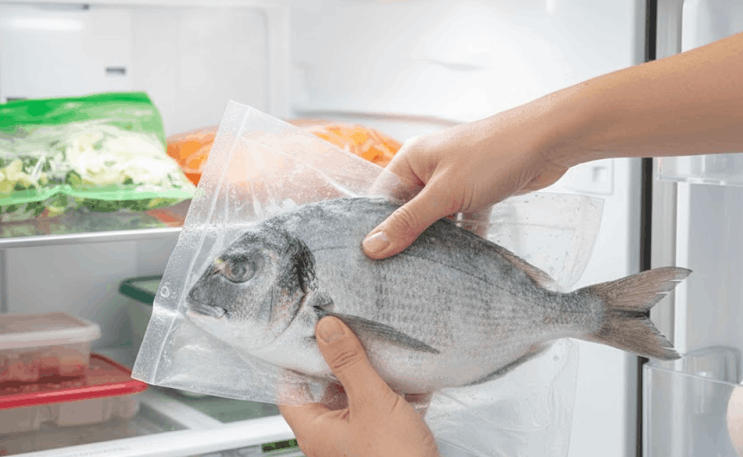 Sobre cómo congelar pescado correctamente, los pasos son limpiar el producto, secar el exceso de humedad y envolverlo el film o bolsas para congelación.